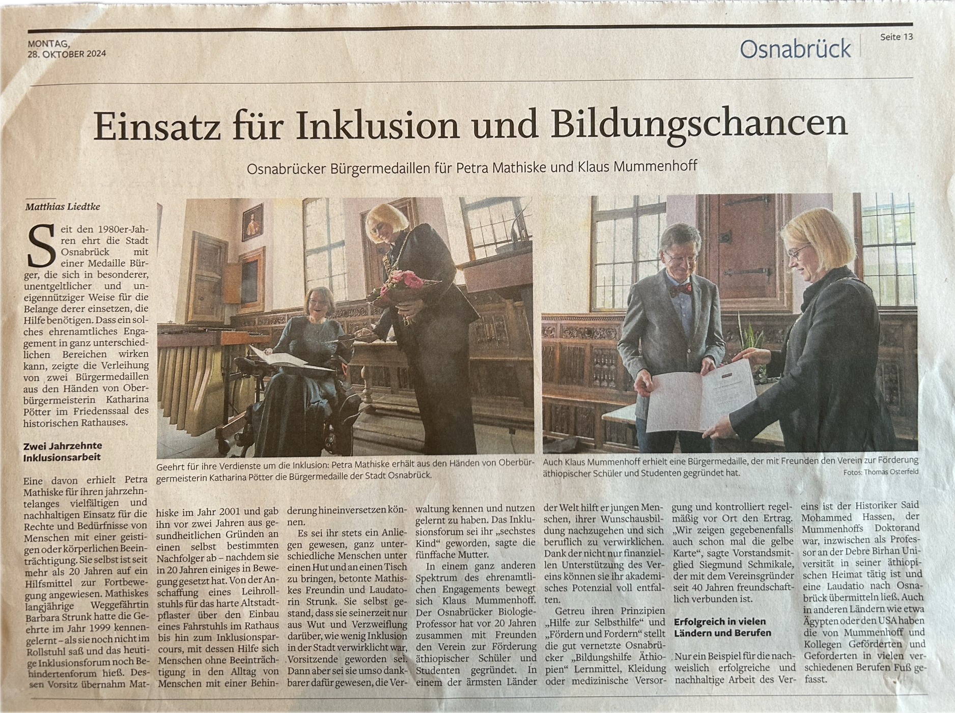 Unser Verein/Klaus Mummenhoff erhält Osnabrücker Bürgermedaille