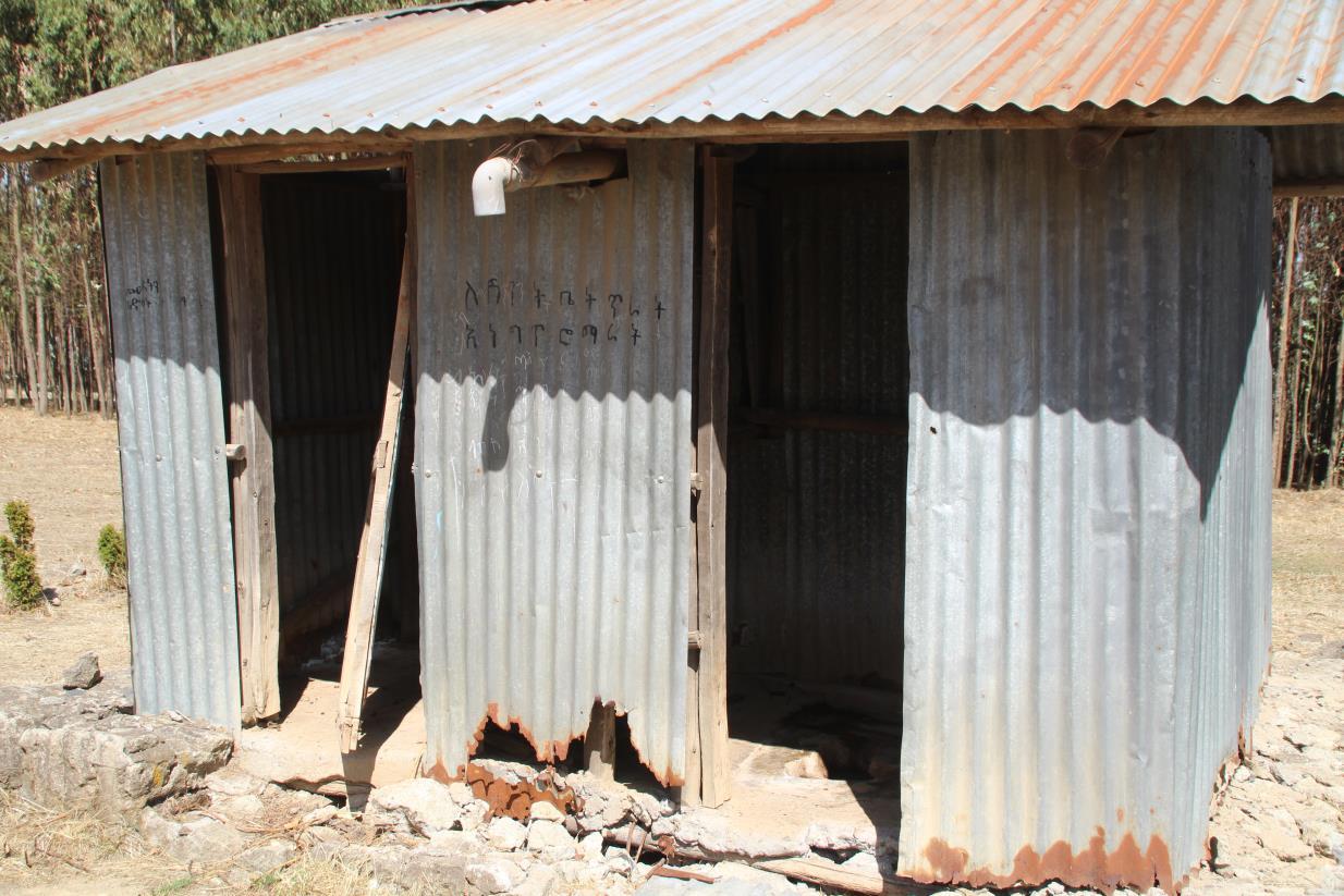 Eines von vier Toilettenhäuschen mit Wasseranschluss und Waschgelegenheit (von uns finanziert) an der Baso-Schule in Debre Birhan.